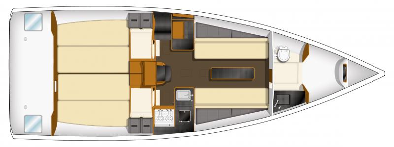 Le SUN FAST 3200 est un voilier fonctionnel et fiable, équipé d'une cuisine, d'une table à cartes, de deux cabines doubles et d'un wc.